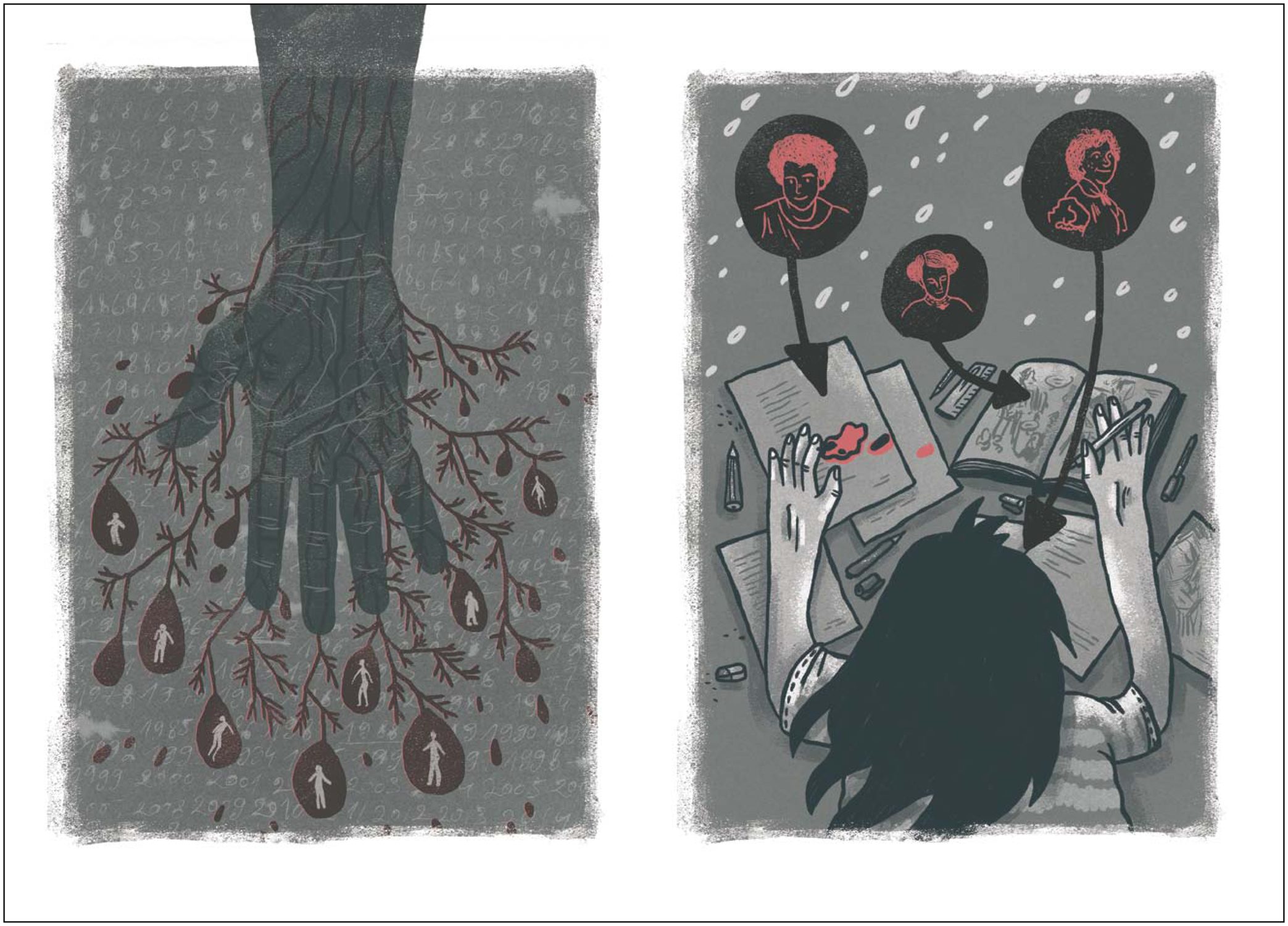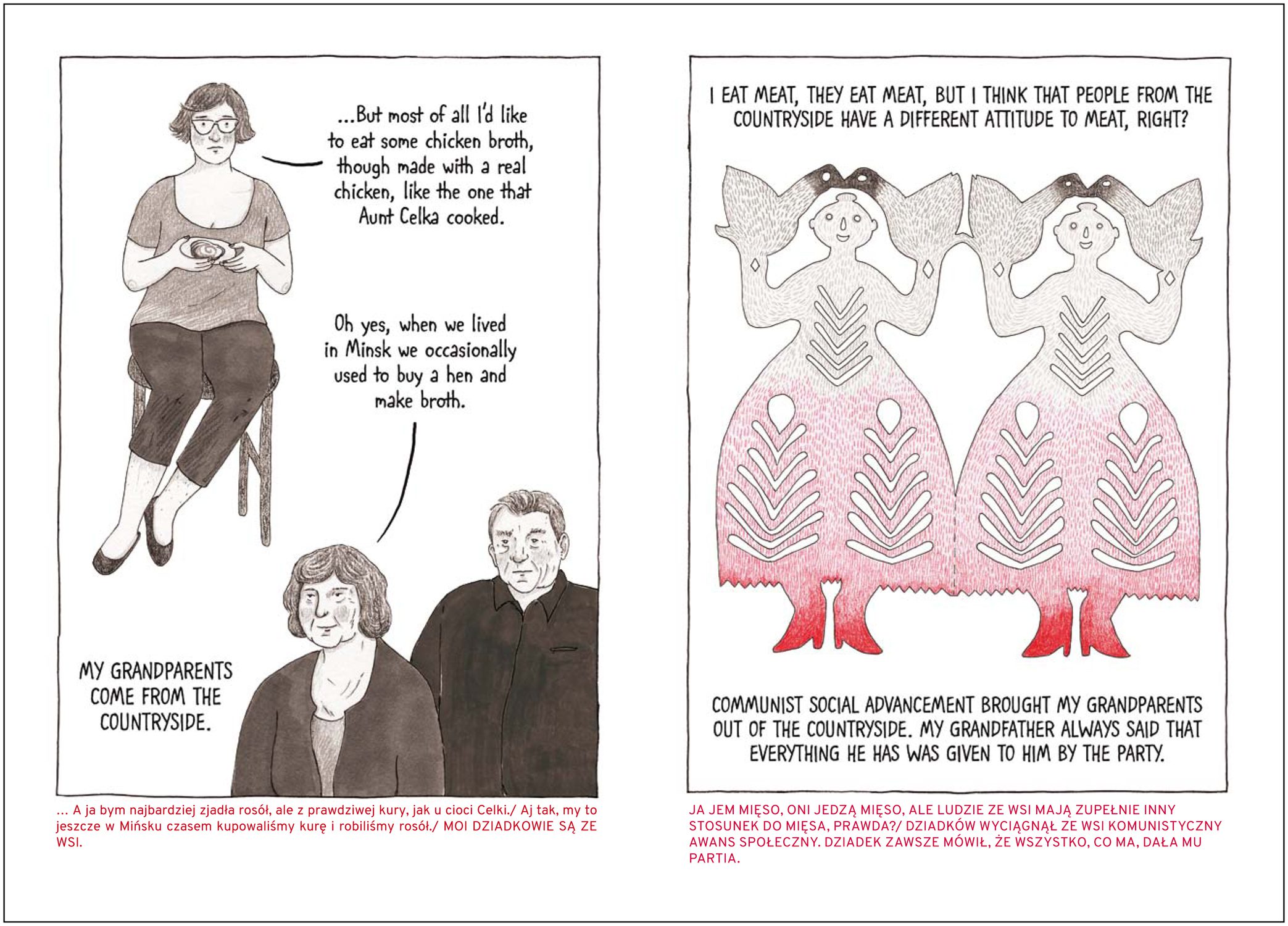 The Blood Anthology illustrates the range of meanings that blood bears, from its mythological aspect (the magical powers attributed to menstrual blood), through the symbolism of heredity – the inevitable genealogical continuity, through revenge and violence, to strong connotations with physical pain. Blood also touches upon various layers in terms of art, not limiting itself to comics. Inside the anthology, we will find references to Frans Masereel’s and Lynd Ward’s woodcut pre-comics; subtle portraits; the simplicity of cartoon art; photomontage and psychedelic references to science-fiction.