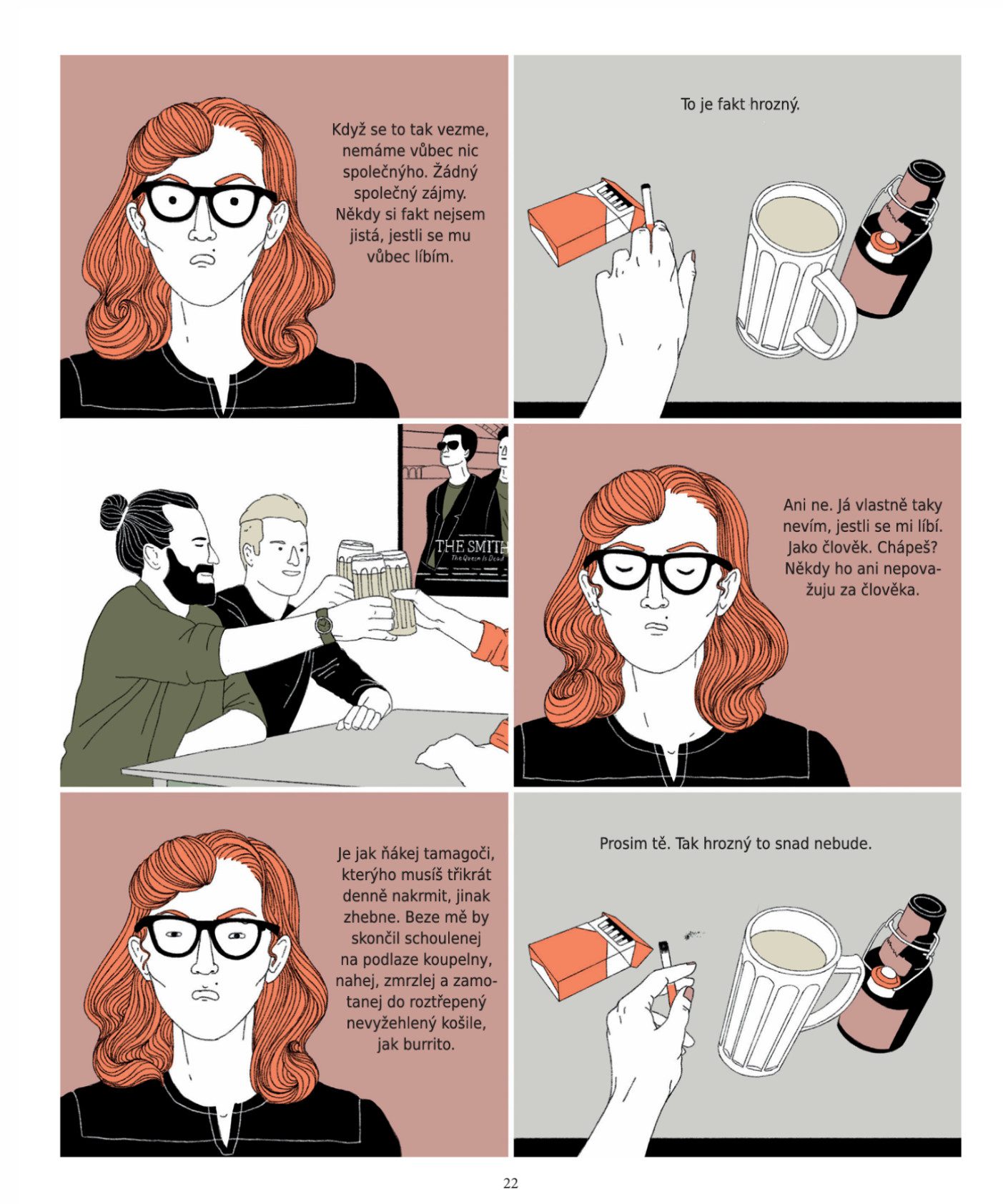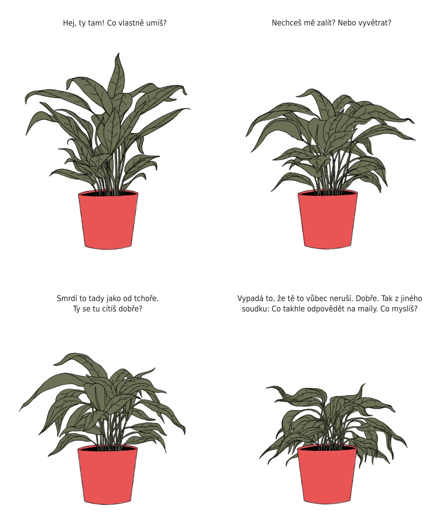 Ještěže jsme si o tom promluvili je manifestem letargie, deprese a nevydařené komunikace. Jeho universum tvoří zlomyslná babička, mile průjmovitý mopslík a pasivně agresivní pokojová rostlina. Jestli se vám někdy přihodilo, že jste si se svým životem nevěděli rady, tak se tu chtě nechtě určitě poznáte. Julia Bernhard líčí svět své protagonistky v deseti skurilních, lakonických scénách, které jsou sběrem každodenních jízlivých dialogů a monologů o uměleckých projektech, aférách, vztahových dramatech a prokrastinaci.