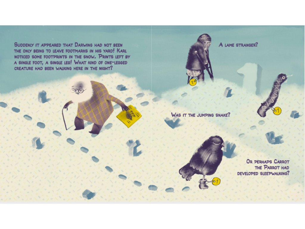 It is a nice winter morning when scientist Karlis Dravins wakes up and goes to get his mail from the postbox next to his house. As he walks back he notices footprints in the snow and starts to walk in circles trying to understand what may have left then - a starfish, a burglar, a moonstruck parrot, or something else? The more he thinks and the more he walks the bigger grows the number of footprints left in the snow.